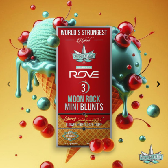 Your Presidential Moon Rock Blunts consist of estate grown, single sourced flower. The flower is then INFUSED with premium distillate formulated by award winning manufacturer Rove, using Presidential’s proprietary infusion process that enables us to permeate the flower to the stem. Finally, it is coated in the highest quality kief, creating the slowest burning, most potent Moon Rocks on the market! Our blunts are ground and rolled in 100% tobacco free wraps for your enjoyment!